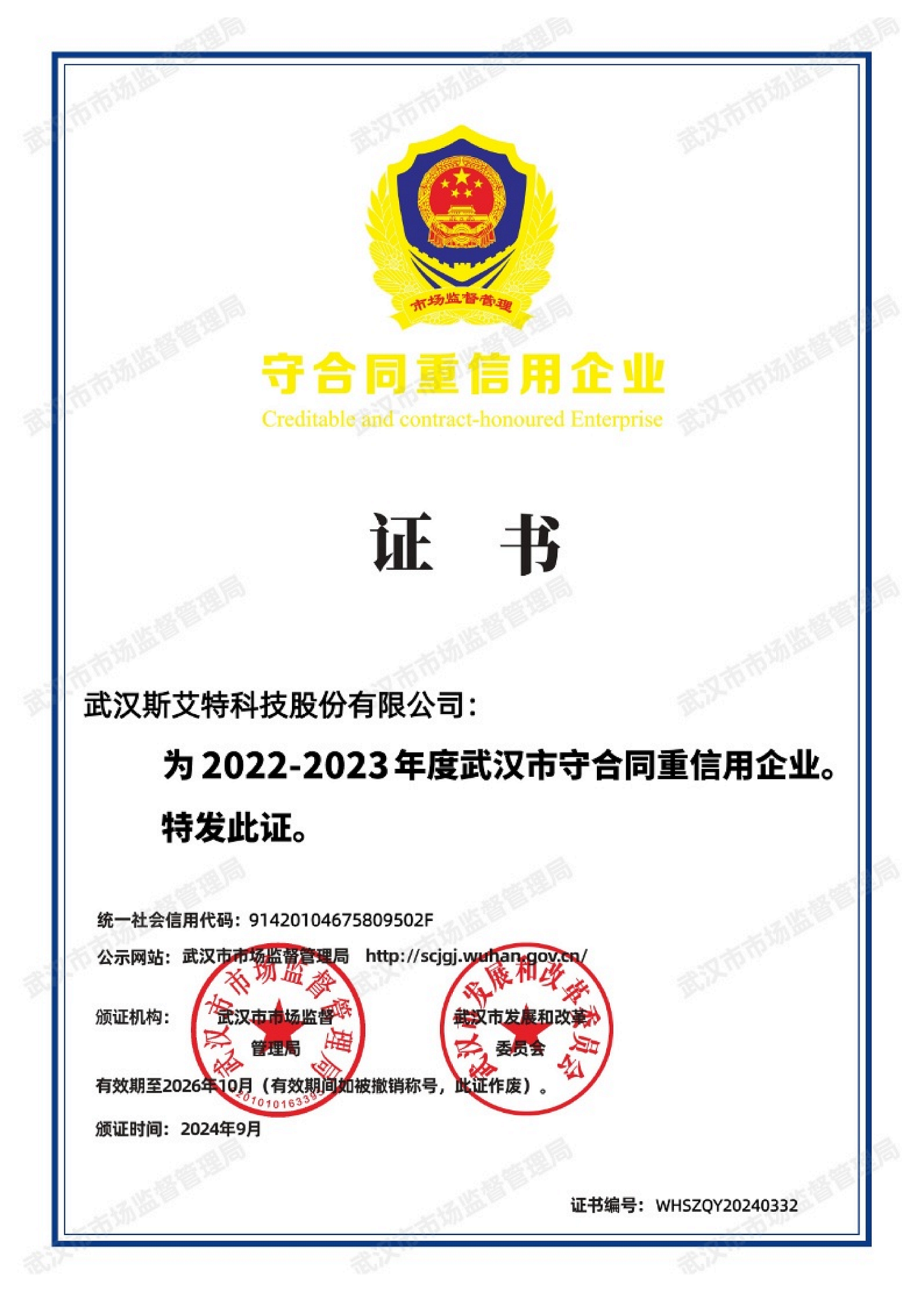 為進一步發揮信用監管的基礎性作用,推進企業合同信用體系建設,根據《湖北省合同監督條例》《湖北省企業合同信用狀況公布暫行辦法》規定,省(市)市場監管局、省(市)發展改革委聯合開展了2022—2023年度武漢市“守合同重信用”企業公布活動和第十七屆湖北省“守合同重信用”企業推薦活動。我司被認定為“2022-2023年度武漢市守合同重信用企業”和“湖北省第十七屆(2022-2023年度)守合同重信用企業”。