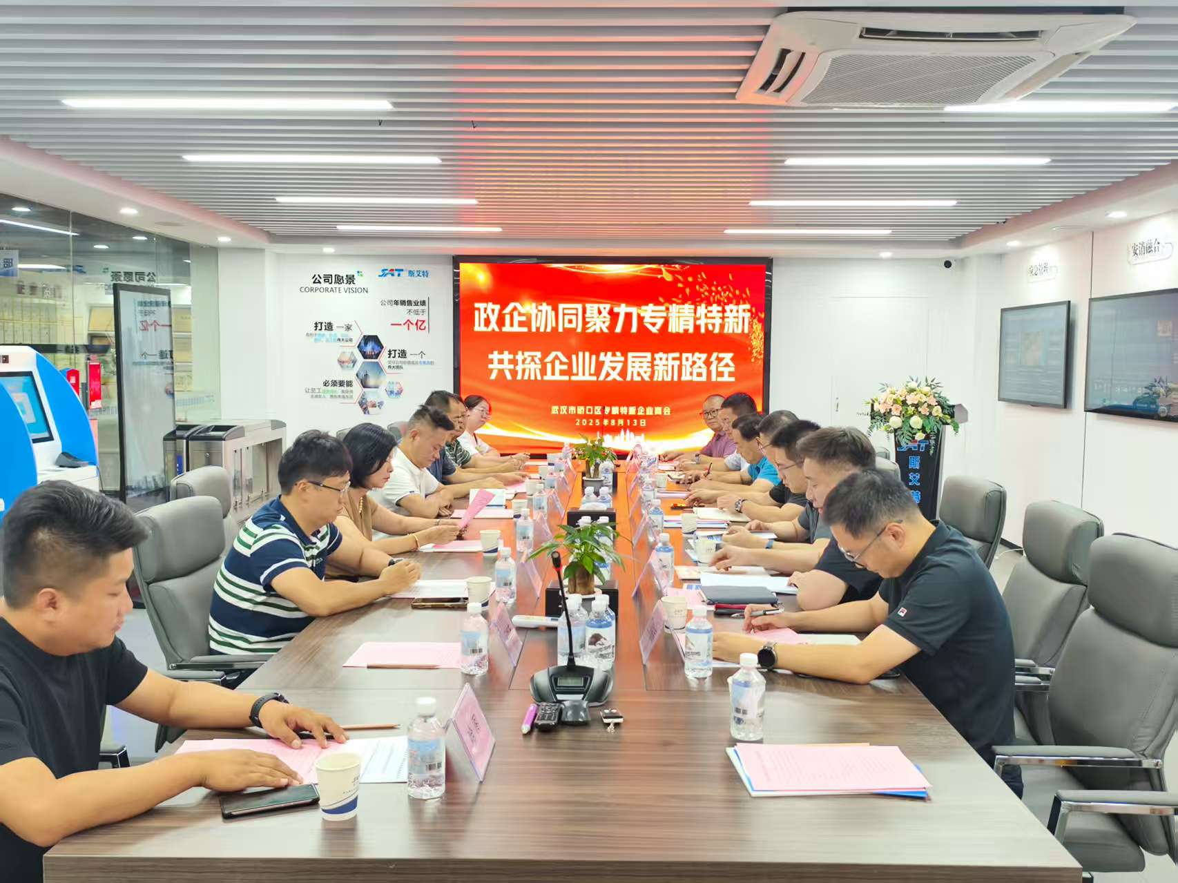 8月13日,區委常委、區政府副區長蘇新威、區工商聯、區經科局、區商務局、區產發公司(籌)等部門領導蒞臨武漢市硚口區專精特新企業商會會長單位——武漢斯艾特科技股份有限公司(以下簡稱“斯艾特科技”)開展“政企協同聚力專精特新,共探企業發展新路徑”調研座談會。本次會議由硚口區工商聯主席周云忠主持。武漢市硚口區專精特新企業商會會長、武漢斯艾特科技股份有限公司董事長張濤與武漢市硚口區專精特新企業商會秘書長一同參加了本次調研座談會。