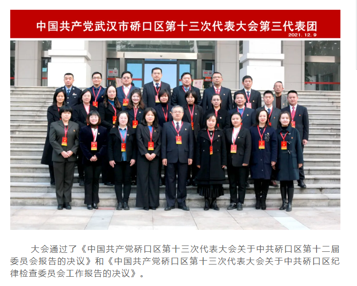中國共產黨硚口區(qū)第十三次代表大會勝利閉幕